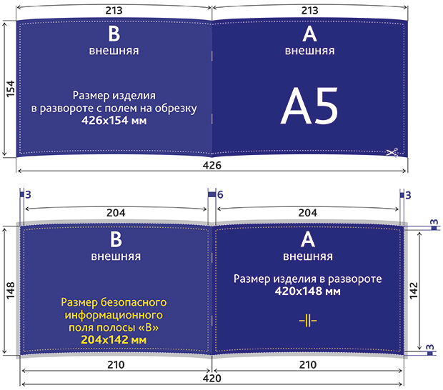 Размер безопасного информационного поля: 204x142 мм (где будет текст, логотип);